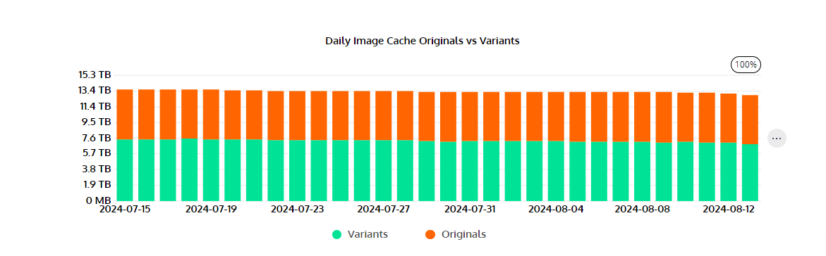 <table><thead><tr><th width="58">#</th><th>Title</th><th>Description</th></tr></thead><tbody><tr><td>1</td><td>Daily Image Cache Originals vs Variants</td><td>Total disk space taken by both Originals and variants, stacked per day</td></tr></tbody></table>