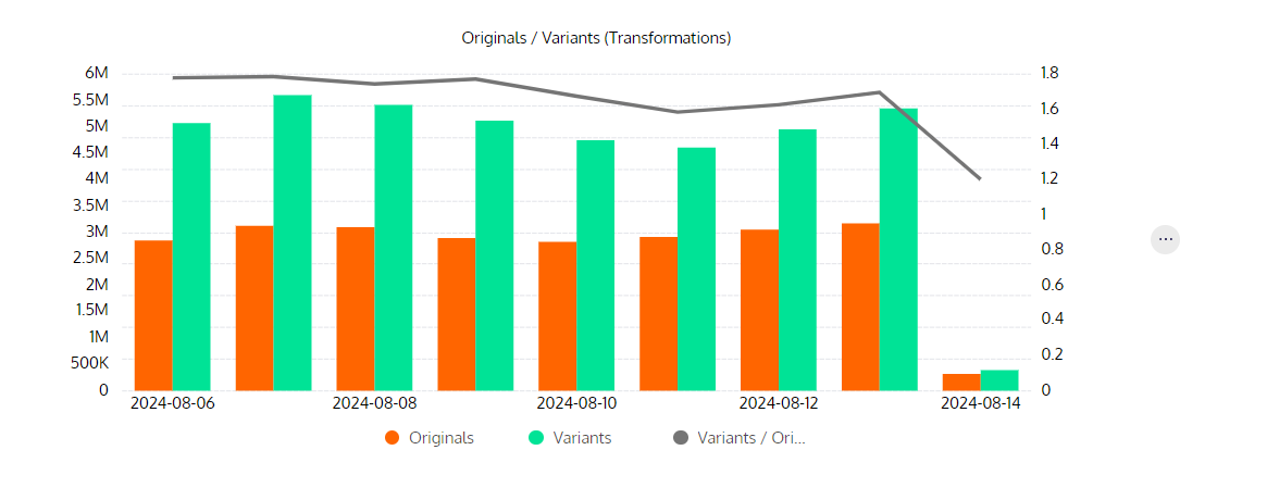 <table><thead><tr><th width="58">#</th><th width="343">Title</th><th width="348">Description</th></tr></thead><tbody><tr><td>1</td><td>Originals</td><td>Total unique original Uris</td></tr><tr><td>2</td><td>Variants</td><td>Total unique resized Uris</td></tr><tr><td>3</td><td>Variant rate</td><td>Total unique original Uris / Total unique resized Uris</td></tr></tbody></table>