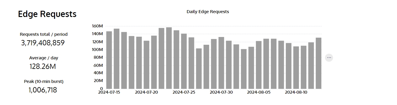 Represents the maximum number of hit requests within 10 minutes during the selected period.