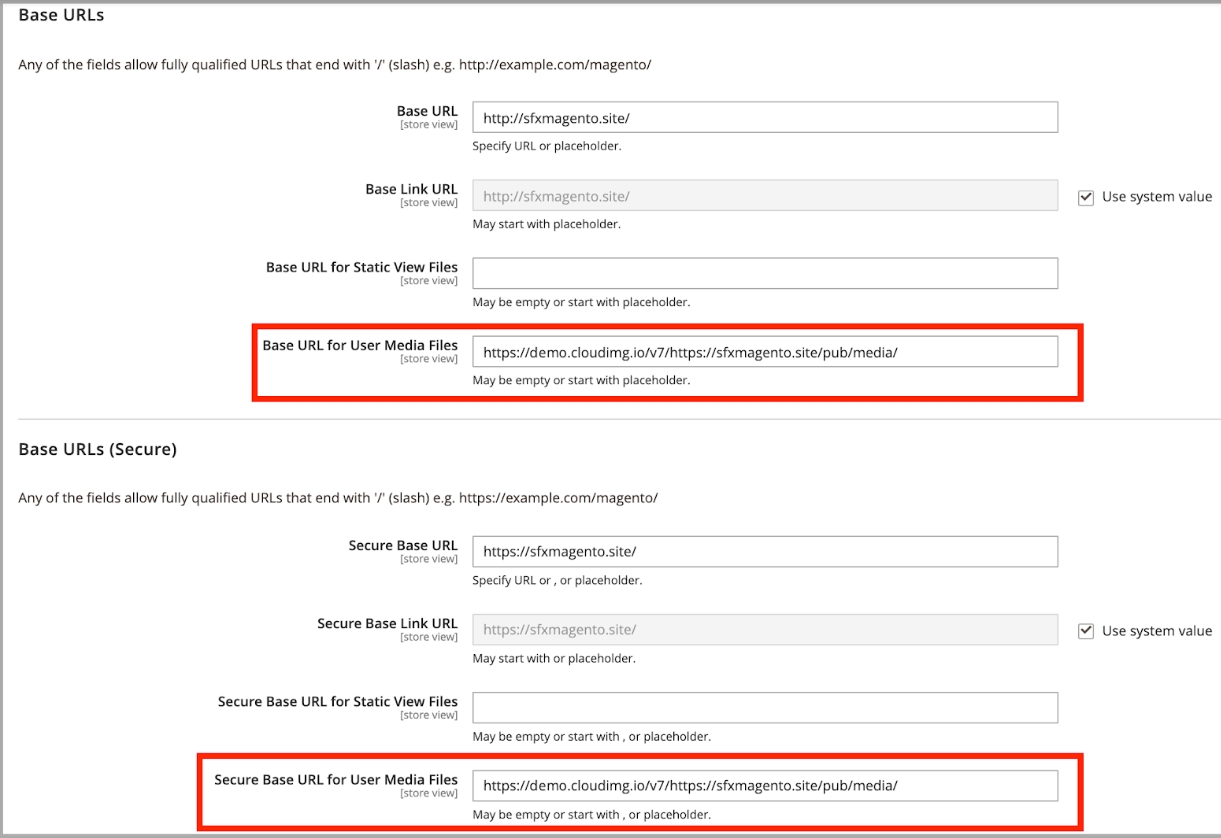 For example, if your website is https://sfxmagento.site, and your token is demo, the final URL address should be: https://demo.cloudimg.io/https://sfxmagento.site/pub/media/