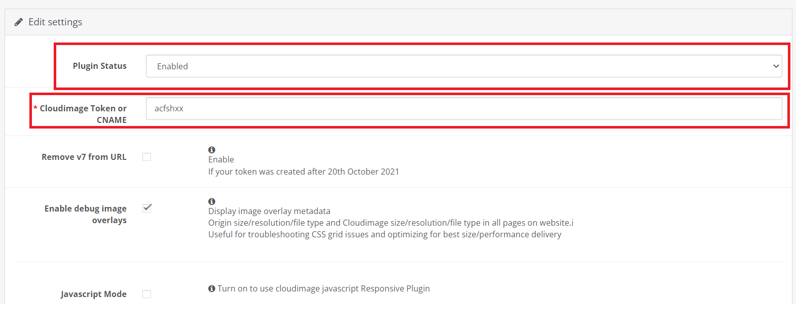 | Remove v7 from URL              | If your token/CNAME was created after 20th October 2021 you need to tick this option.This option will remove the "v7" part from image URLs.                                               |
