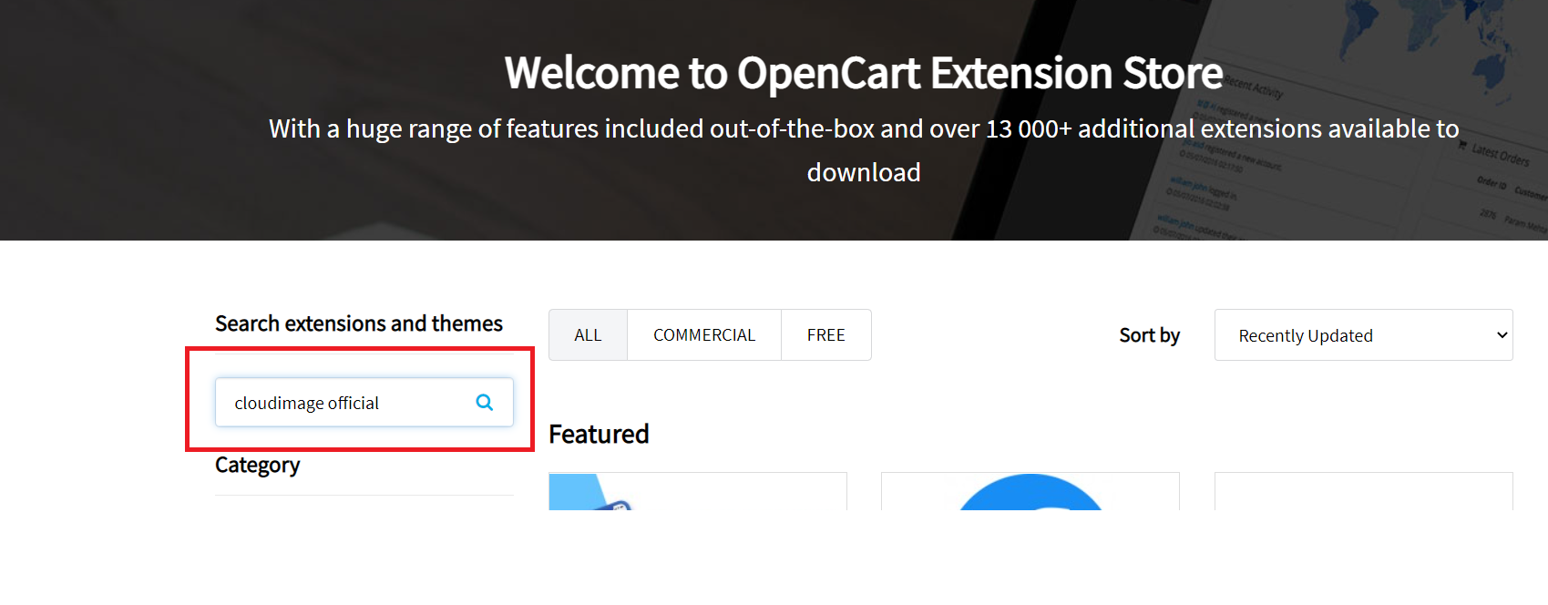 To get the plugin, you need to open [Opencart Extension Marketplace](https://www.opencart.com/index.php?filter_license=0\&route=marketplace/extension&).