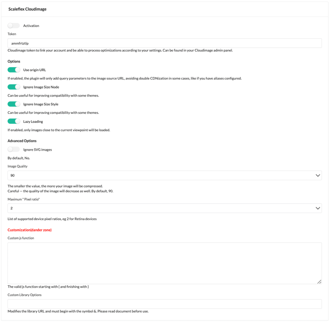 | Token                   | Token from Cloudimage (found in your admin panel)                                                                                                                                                                                                                                                                                                                                                                                                              |