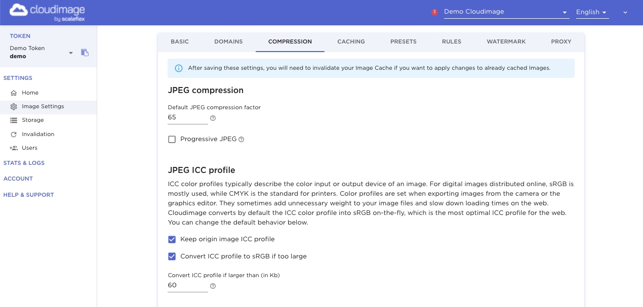 If you prefer to retain the original ICC profile instead of converting the image to sRGB, you can activate the Keep origin image ICC profile option in the admin panel (Image Settings -> Compression).