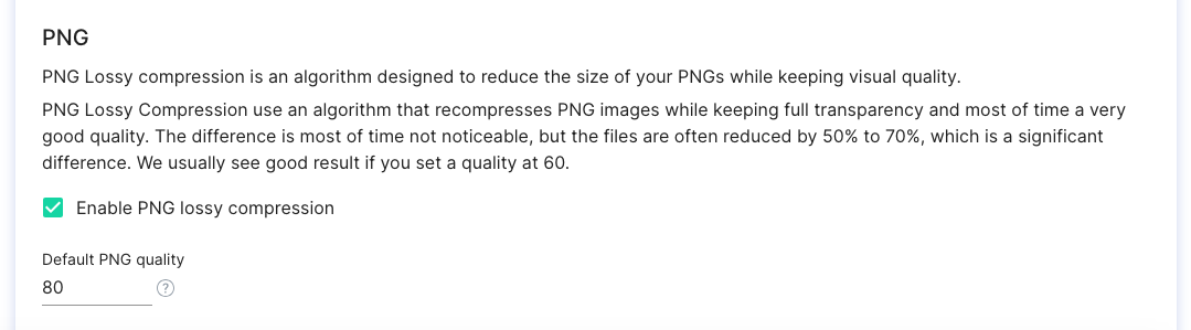 You can activate this feature in the Admin Console (*Image Settings/Compression*):