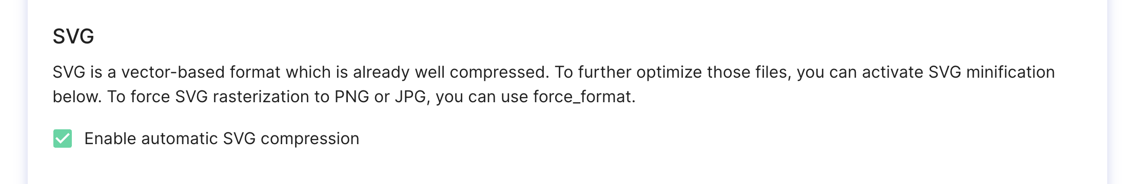 | ![](https://content.gitbook.com/content/IDIcmPiz7q6Sr6ZHHQxV/blobs/SSUlnHeV3FeaUaIKXlNV/image.png) | <p>Compressed SVG (221 bytes):<br><a href="https://doc.cloudimg.io/https://samples.scaleflex.com/5603.svg?force_format=svg"><https://samples.scaleflex.com/5603.svg?force_format=svg></a></p> |